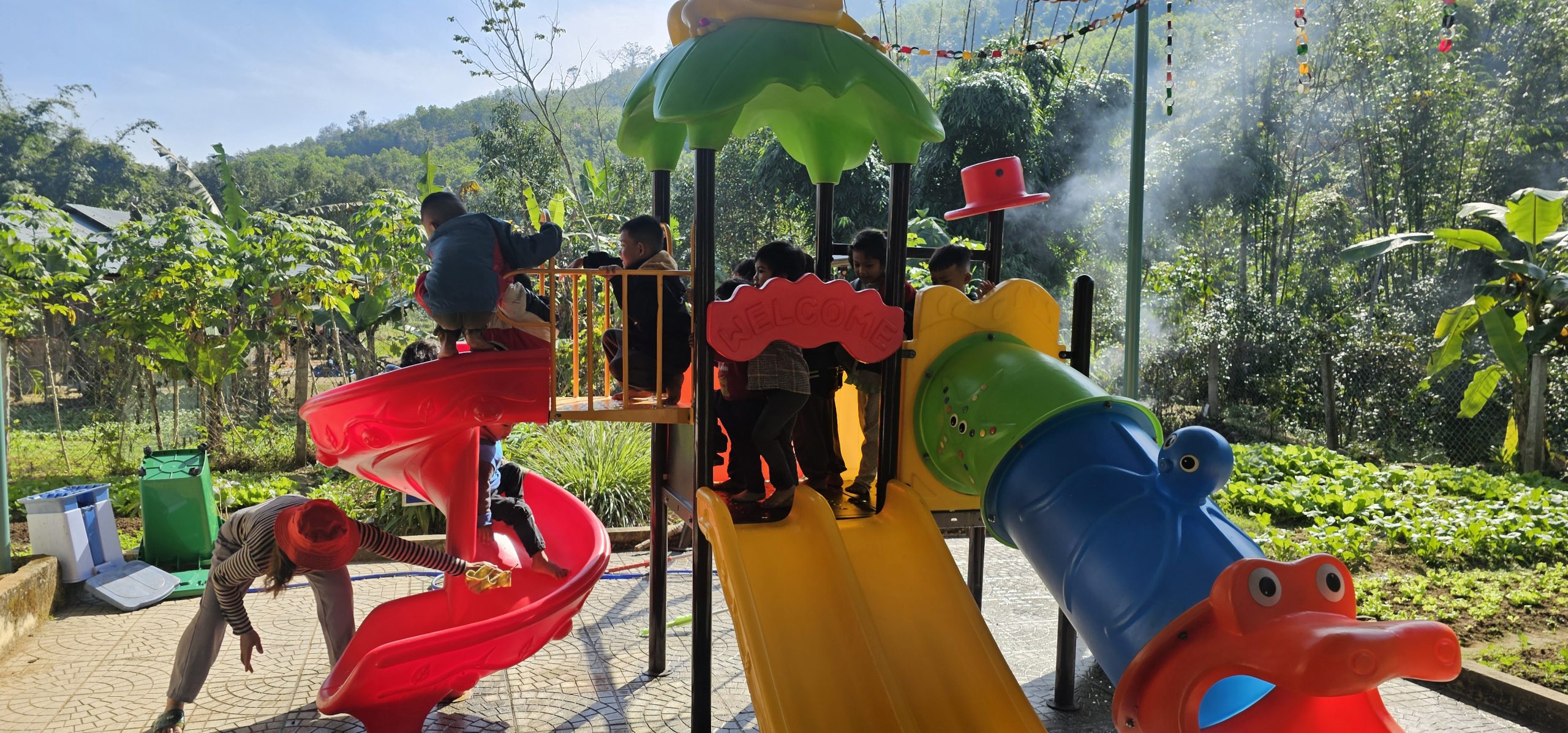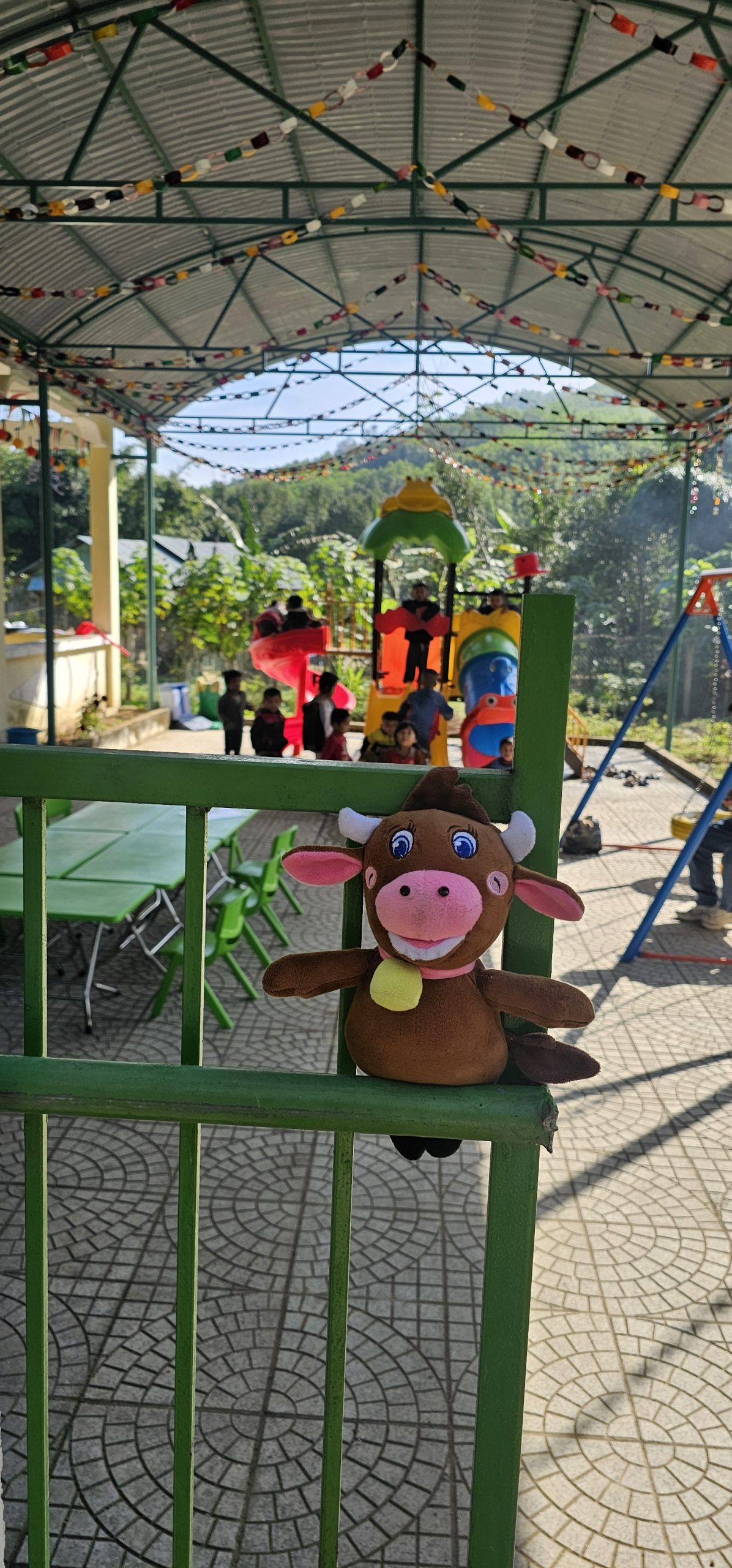 - Inspection of the shaded area designed & installed for the kindergarten in K8 hamlet, creating a safe and welcoming environment for local children to learn and grow.